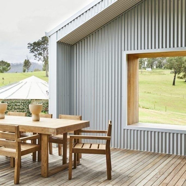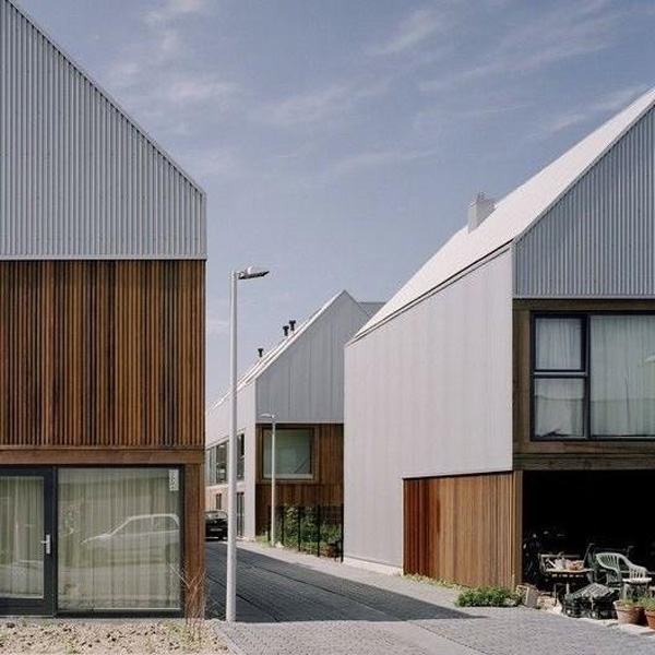 立体的なデザインが奥行きを演出し、外観をシックに彩るアルミ製のリブ材です。
