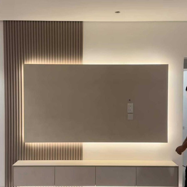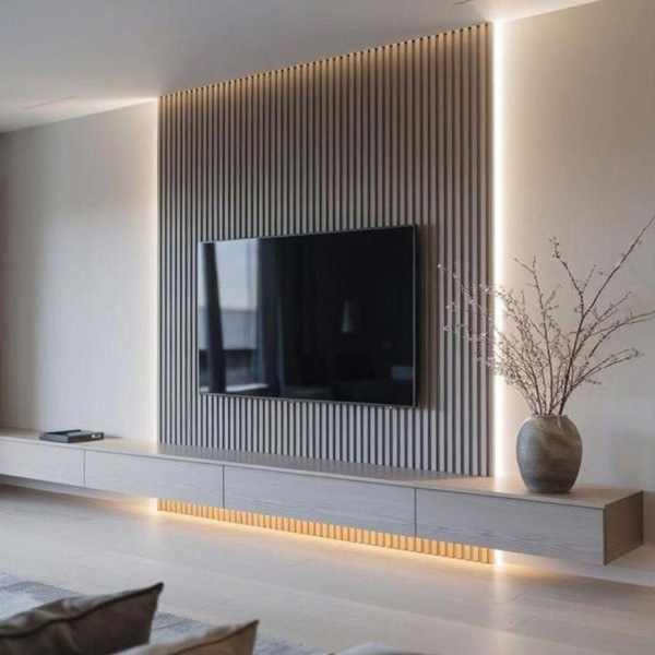洗練された中にも、温かみを感じさせるパイン材のリブパネルです。
